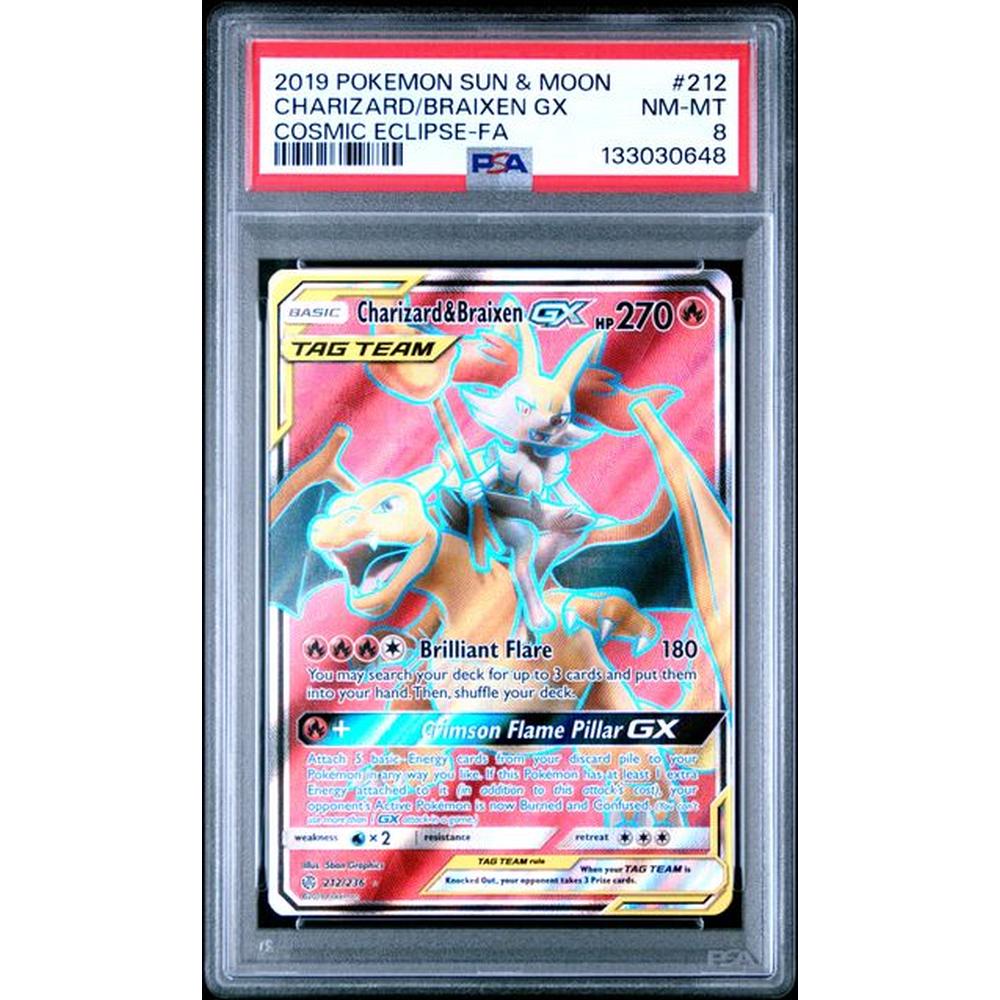 2019 POKEMON SUN & MOON COSMIC ECLIPSE #212 CHARIZARD/BRAIXEN GX | PSA 8 |