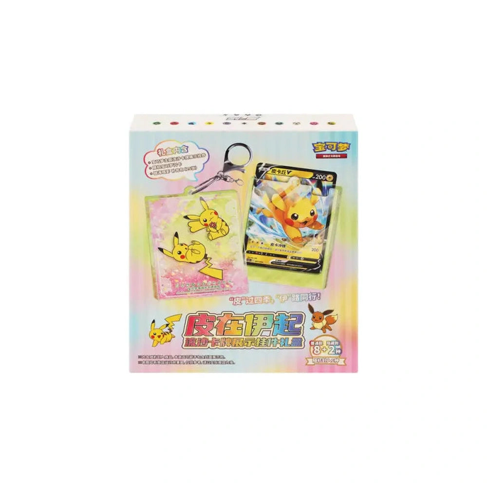 Denne kinesiske gaveboksen kombinerer samleglede og funksjonalitet i ett produkt. Med fokus på Pikachu og Eevee, inneholder boksen en eksklusiv keychain som også fungerer som kort-display - perfekt for å vise frem favorittkortet ditt på en kreativ måte.