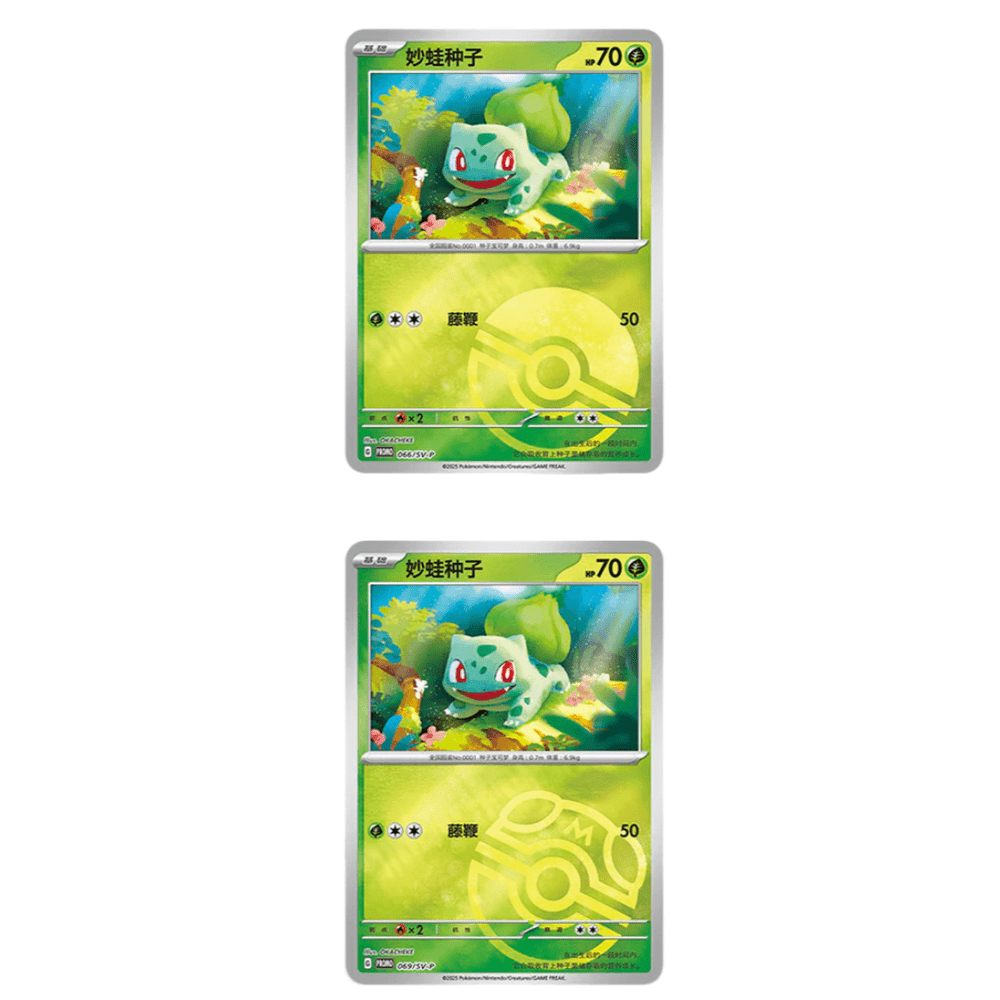 - 1 Bulbasaur promokort (Poke Ball holo, med sjanse for Master Ball-variant)